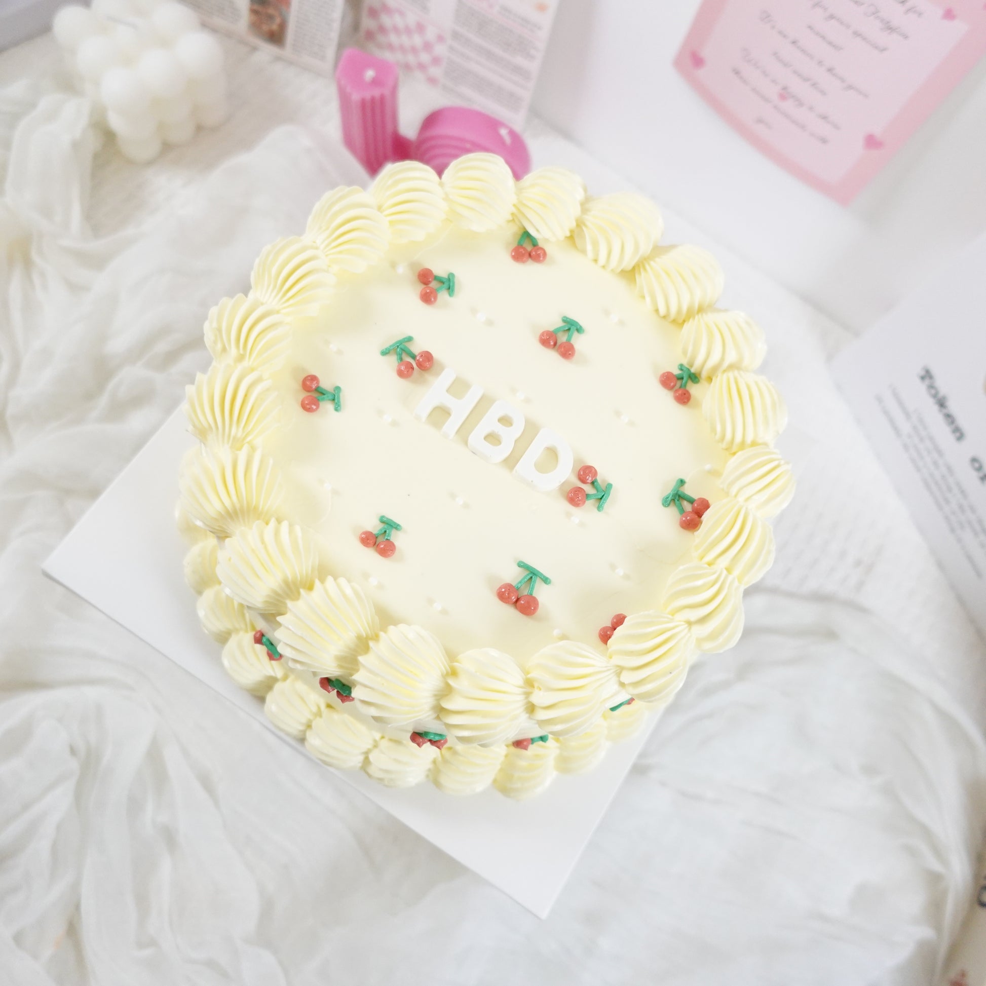 Loved for its playful yet elegant cherry design, this cake is a customer favourite for both small and large gatherings.